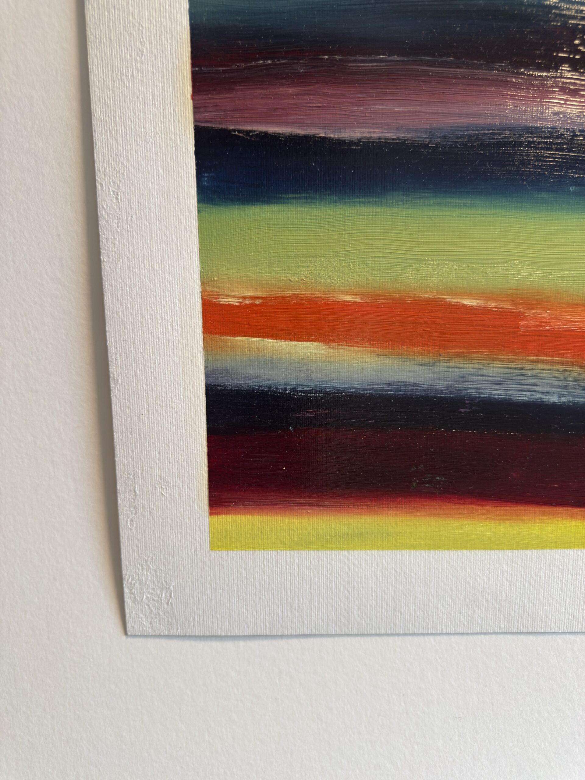 Oil paints on Fabriano Pittura paper. Glossed and Varnished.